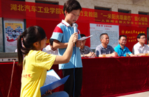 7月10日上午,湖北汽車工業(yè)學(xué)院“V益·青竹”暑期愛心支教團的大學(xué)生們在蔣家堰鎮(zhèn)中原小學(xué)舉行愛心捐贈活動。湖北汽車工業(yè)學(xué)院副院長閔祖?zhèn)魍、縣教育局副局長周躍忠同志以及相關(guān)領(lǐng)導(dǎo)都趕來支持。