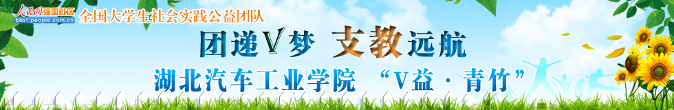 “V益·青竹”支教團隊由9名本科生組成。他們利用兩周暑假時間到湖北省竹溪縣蔣家堰鎮(zhèn)中原小學(xué),開展以“團遞V夢 支教遠航”的主題的實踐活動。自7月9日開始,從“一米陽光暖庸巴”主題愛心募捐和義賣、“支教路上共成長”主題支教、“我的V夢想”主題畫展暨文藝匯演、和“團遞V夢 支教遠航”主題宣講等四個方面開展實踐活動。團隊已經(jīng)在六堰廣場舉行了“一米陽光暖庸巴”報紙義賣和愛心募捐活動,將籌集到的善款和物資捐贈給中原小學(xué)。支教課堂上,志愿者們教授孩子們英語、華爾茲、電子琴、繪畫等課程,開設(shè)班級也由計劃中的一個班擴展到三個班。