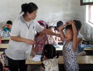 志愿者宋文靜是付里莊小學(xué)手語老師,是團隊隊員和孩子們公認的富有童趣的一小老師。她經(jīng)常陪孩子們做游戲,陪他們看哆啦A夢。但就是這樣一位老師,上了課堂卻像換了個人似的,非常嚴厲。志愿者王蒙苗是付里莊小學(xué)口才勵志課老師。課堂上,她認真教學(xué),課堂下用勵志故事激勵孩子們努力學(xué)習(xí)。因為經(jīng)常照顧生病的孩子,孩子們認為她最有愛的一個老師。志愿者孔令陵是后勤人員之一及封丘支教教務(wù)主任。她每天都會在五點去最近的商店買菜,然后摘菜、洗菜,做整個團隊和部分孩子的飯菜,保障全隊生活