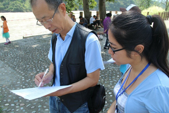 “綠色新生態(tài)”團(tuán)隊(duì)的成員來自四川農(nóng)業(yè)大學(xué)資源與環(huán)境學(xué)院,此次實(shí)踐的主題是“宣環(huán)保足探石棉縣,揚(yáng)生態(tài)共筑中國夢”。隊(duì)員們前往災(zāi)后重建縣城——雅安市石棉縣開始為期8天的征程:走訪石棉縣下屬各鄉(xiāng)鎮(zhèn),發(fā)放調(diào)查問卷,采訪相關(guān)政府部門,參觀革命紀(jì)念館等。雖然實(shí)踐進(jìn)展的不是一帆風(fēng)順,但隊(duì)員們?nèi)詧?jiān)持不懈,不斷反思自我!敖裉斓膶(shí)踐帶給我最多的就是震撼和感動(dòng),在分發(fā)便利貼時(shí)遇到了很多困難,但克服這些困難之后會(huì)有一種深深的滿足感。飽含濃郁的紅色文化氛圍的安順是我們小隊(duì)宣傳‘中國夢’的絕佳之地,我們還要更加努力!标(duì)員胡瀚文在中國工農(nóng)紅軍強(qiáng)渡大渡河紀(jì)念館做環(huán)保宣傳時(shí)這樣告訴記者。另一位隊(duì)員郭瑀說:“能深入鄉(xiāng)村進(jìn)行面對面的了解對我來說是一個(gè)全新的經(jīng)歷,很新鮮也很有意義。雖然實(shí)踐的時(shí)候很累,但還是有一股力量支撐著自己堅(jiān)持下去,我們的成員們都很棒,相信我們能取得好的成果!