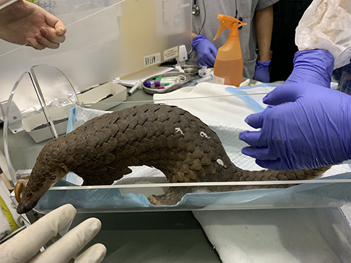 穿山甲“沒(méi)動(dòng)”正在做CT檢查。受訪(fǎng)者供圖