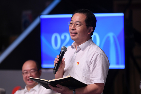 人民日?qǐng)?bào)社機(jī)關(guān)黨委常務(wù)副書記魏建周向選手提問(wèn)
